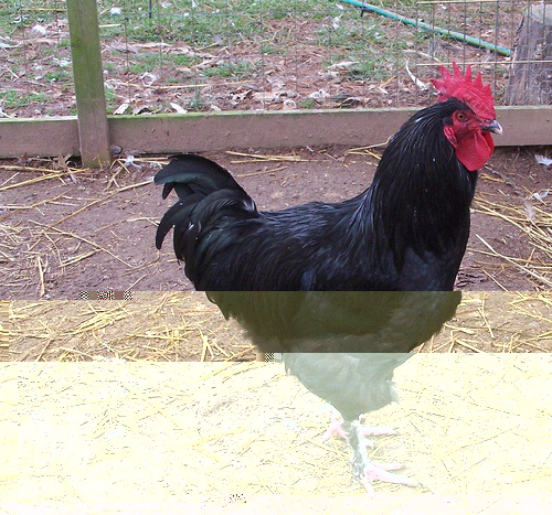 Non capisco poi perché abbinare un soggetto nero con un blu ramato. Se dovevi abbinare era meglio un maschio nero ramato. Ok Non vedo bene se la gallina è dotata di calzatura al tarso . Puoi fare una foto più ravvicinata delle zampe?