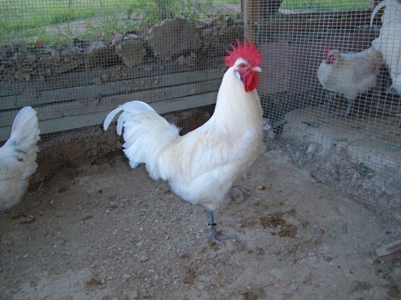 è un po' sporco ma è un bel gallo giovane di bresse bianca.e le donzelle?