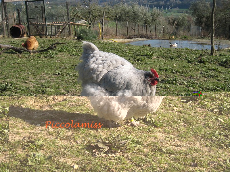 fai bene cinic a farci un pensiero. Me ne trovo due per caso e sono bellissime bestiole. Tutte le persone che vengono da me sia per i polli che non, sono colpiti da queste due. Non ho solo robusta lionata ma anche altre razze eppure mi chiedono sempre di loro. E' vero che le uova sono piccole a confronto della grandezza della razza, ma che importa, chi ha necessità di averne di più grandi prende una livorno a far compagnia alle orpington. L'importante è che siano feconde e che nascano. Anche le mie sono libere nel fango, sotto la pioggia e cose così ma non ho mai pensato di tagliare il piumaggio. Non ho visto nessun lionata accoppiarsi con una di loro, vero è che ho molte femmine in giro. Ogni tanto ne prendo una in braccio, mi sembrano lussuose bambole!  Allegato: