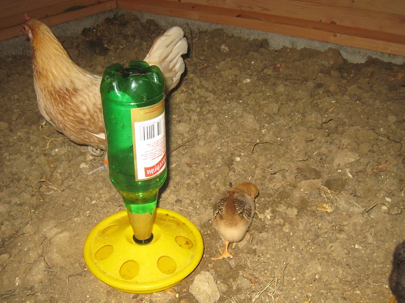 Caro Dario, pulcini di pochi giorni come i tuoi non necessitano di una piscina che è effettivamente pericolosa per annegamento e raffreddamento dei piccoli. Ti mostro la foto di un abbeveratoio pratico, adatto a chiocce e pulcini. Questo l'ho acquistato un paio di anni fa presso un espositore alla fiera di Bastia Umbra ma ho trovato un'agricola vicino casa che ne è fornito solo un po' più grandi di dimensione. Prova a cercarli presso il tuo rivenditore di mangimi, se non li trovi per me sarebbe un piacere spedirtene uno
