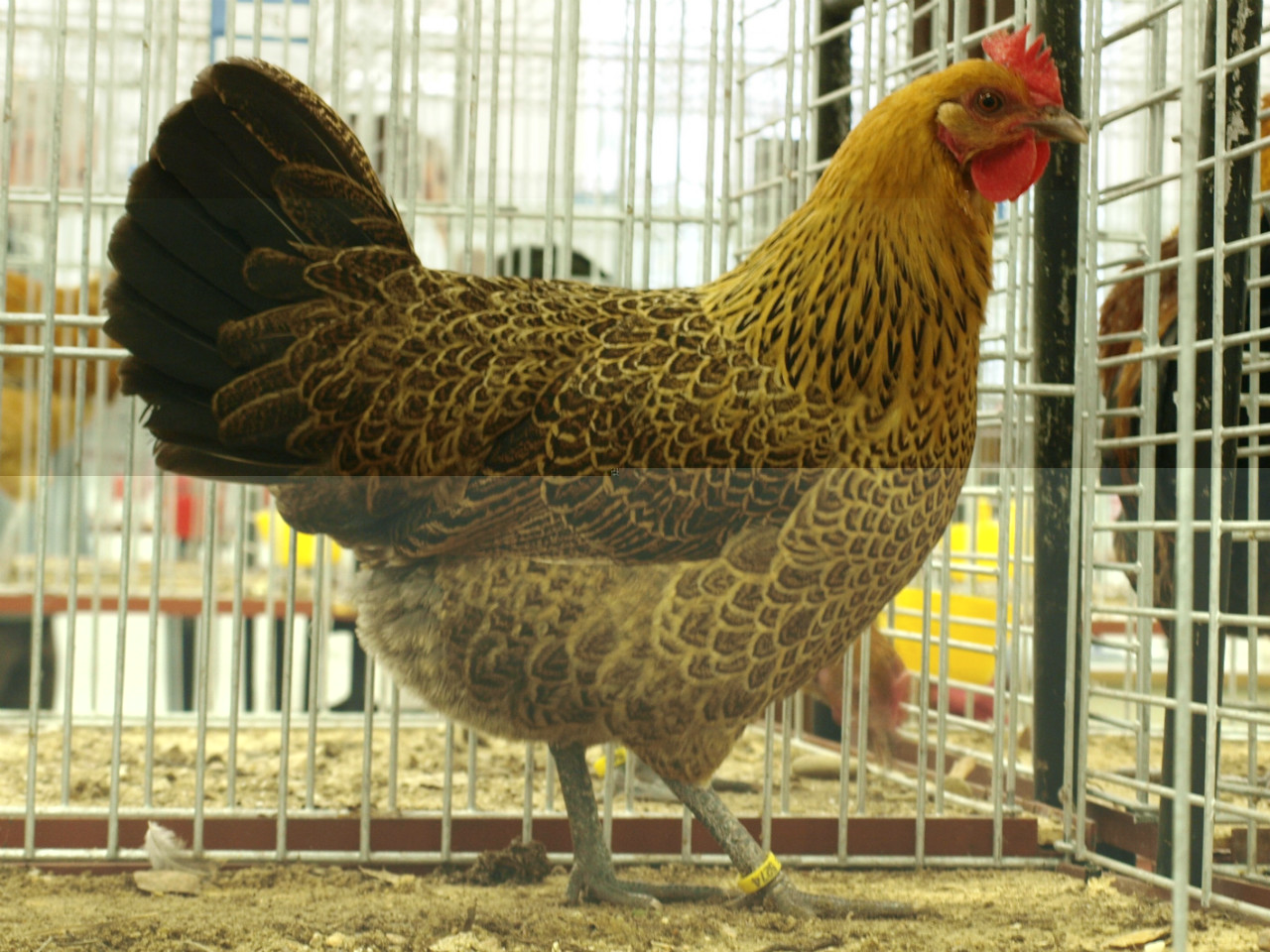 Descrizione I polli sono per lo più tenuti in un unico colore tigrato oro. Il gallo ha le piume d'oro sul collo. e penne dorsali sono dal bruno al oro rosso. Le piume delle ali sono marroni con riflesso verde. La coda è nera. Il petto è oro tigrato. Il becco è colore ardesia fino al colore marrone scuro con l'estremità gialla. Le galline sono completamente di colore marrone chiaro tigrato oro. Sulla testa c'è una sola cresta rossa. Le zampe sono di colore ardesia blu. Le galline producono 160 uova all'anno di 55-60 g di peso. Pulcini nascono di colore marrone chiaro striato."