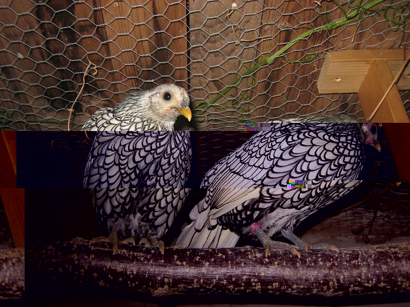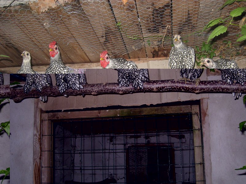 ritorno ai miei Sebright, prima di tutto per mostrarli a chi me ne ha gentilmente fatto dono e naturalmente a tutti gli appassionati di questa razza. Ho scattato qualche foto, non devo portarli in mostra, non devo venderli ne' quantificare il loro valore. Per me sono troppo belli e poco mi importa se purtroppo non tutti e cinque mostrano i caratteri tipici della razza. Posso impegnarmi a non riprodurre una coppia verde, per il resto li curo e mi dedico a tutti esattamente nello stesso modo. In una foto, quella delle due femmine Rose e Peonia, si vede chiaramente la differenza di colore nelle zampe. La zampa verde porta con se' pelle e becco gialli, caratteristiche che non devono esserci in un sebright.  Per Blatta, pur non comprendendo tutto il post, mi sembra di intuire le tue ottime conoscenze nel campo della genetica dunque approfitto per porre una domanda relativamente ad un'altra razza che allevo (Robusta Lionata). Lo farò nell'apposita sezione di Genetica affinchè possa essere seguita da tutti gli utenti interessati alla materia. Spero mi risponderai. grazie, susanna Allegato: