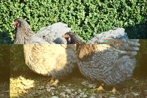la colorazione della gallina di destra presenta un'orlatura troppo evidente che è considerata difetto perchè non ci dovrebbe essere è ammessa dallo standard un'orlatura appena percettibile questa è esagerata.le due galline si presentano poi con tarsi molto corti e piumaggio molto gonfio e pieno di sbuffi non propri della razza inoltre non presentano la linea concava dorso-coda ma una linea inizio-dorso montante tipica non della Wyandotte ma di altre razze.