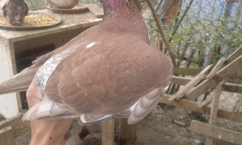Ad esempio, dai miei california rossi bronzo , doppio petto , nascono colombi rossi bronzo, ma ogni tanto ne nasce qualcuno con qualche penna bianca o nera ;).