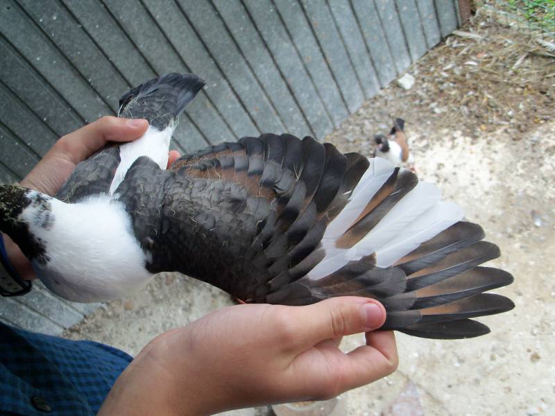 angelob ha scritto: Ed ora l'unico figlio fin ora nato dalla coppia di neri spalla rossa: (sempre per questione di batteria non ho una foto ad ali chiuse  ) Mauro dice che è un giavone, mi ha spiegato che è un ritorno al sauro gazzo molto diluito con il bianco, aggiunge poi che volendo si ottengono buoni colori, ma è più lungo e faticoso rispetto allo sfruttare colori già "pronti" Anche a me sono nati dei colombi della stessa colorazione, da schietti neri veghe bianche, se vai all'argomento più sotto : i miei colombi li vedi e leggere ciò che pensa FABIO ciao nicol