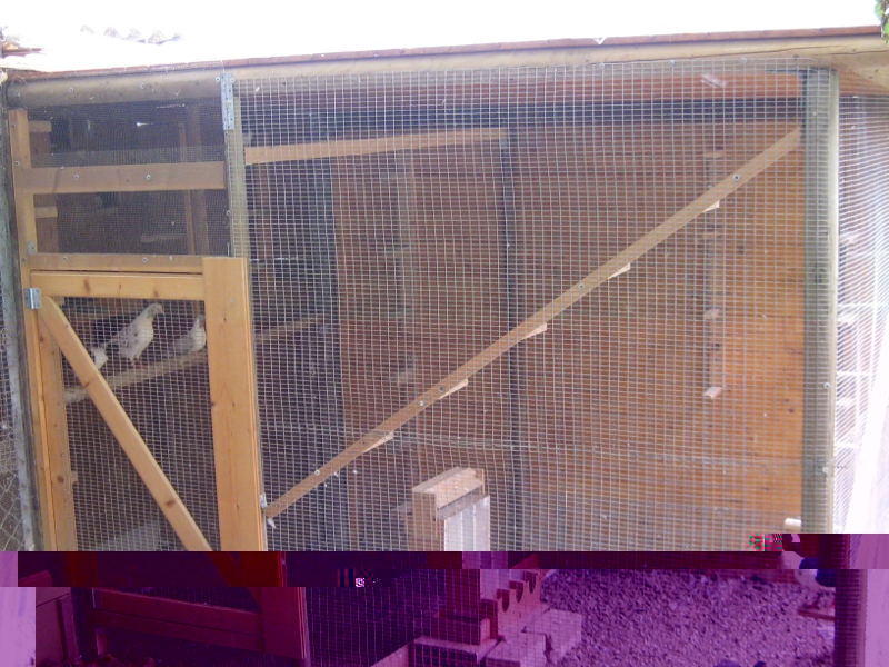 Nella seconda si vede la voliera chiusa ad ovest con il corridoio di servizio e a nord per evitare i venti dominanti, in inverno copro parzialmente la voliera con telo trasparente, ho dovuto mettere(ma non lo condivido) anche una tramoggia a terra per evitare i litigi e consentire ai piccoli che escono dal nido di poterci accedere facilmente.