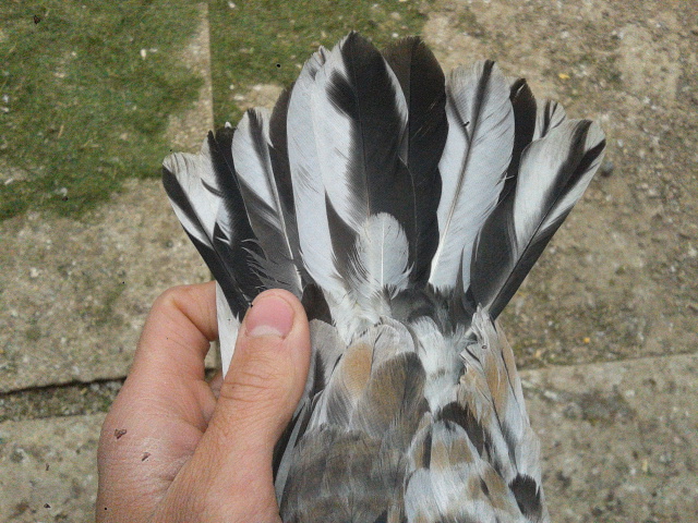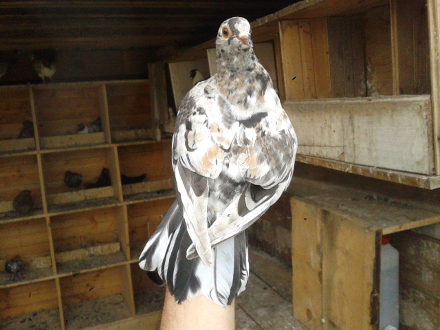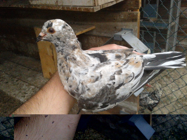 Sarebbe da vedere bene il colore della coda. I colombi portatori di diluizione nascono privi di piumino, ad esempio: il giallo che è la diluizione del rosso,il pietrachiara verga gialla che è la diluizione del bigio verga rossa,ecc ecc