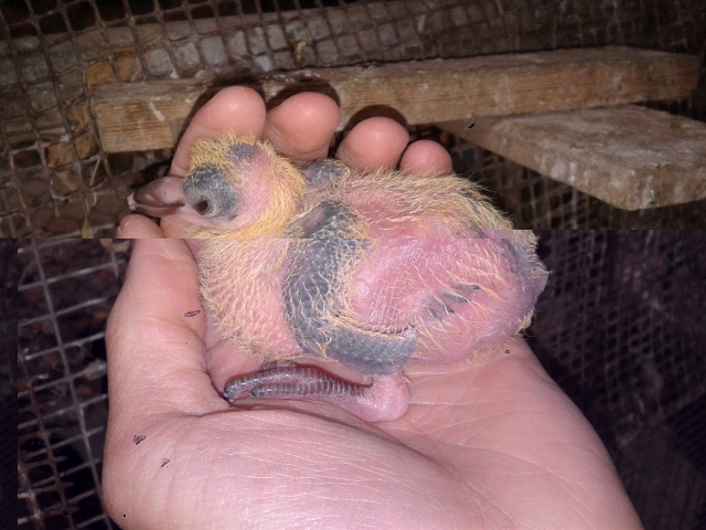 Il primo ha parecchie penne fuori posto, è dall'altro lato che non si vede dov'è messo peggio. Gli altri due invece, il secondo ha anche gli occhi colati come difetto.. Il terzo a parere mio è il migliore, poi vedremo anche gli altri che verranno. Ho osservato che la madre dei piccoli ha l'occhio più chiaro, come i pietrachiara che ho, potrebbe essere che il piccolo venga una pietrachiara?