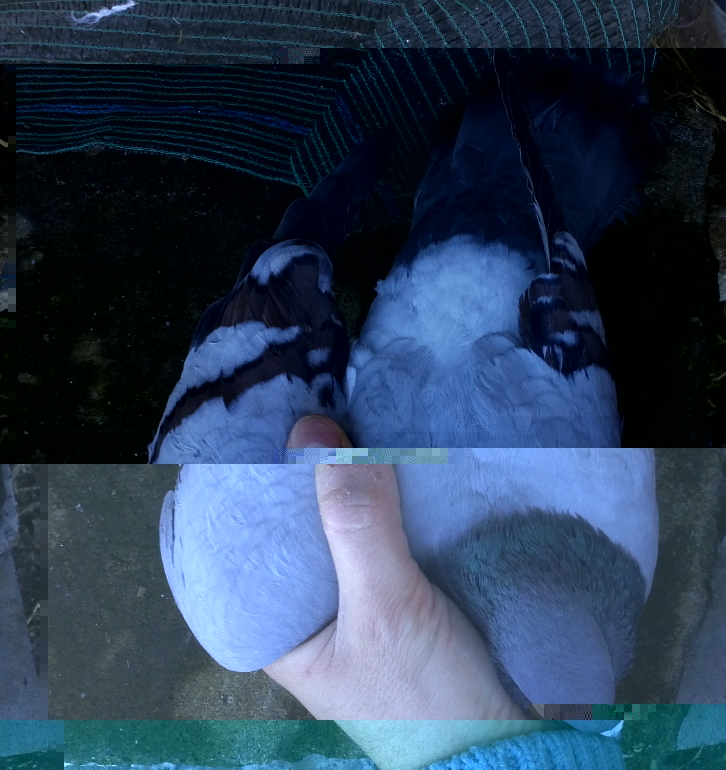 Questa è la prima coppia, il colombo con la fascetta è il maschio e quello con l' anello è la femmina , la foto dell' ala è della femmina. Domani metto le foto dell' altra coppia di bigio. Ninno