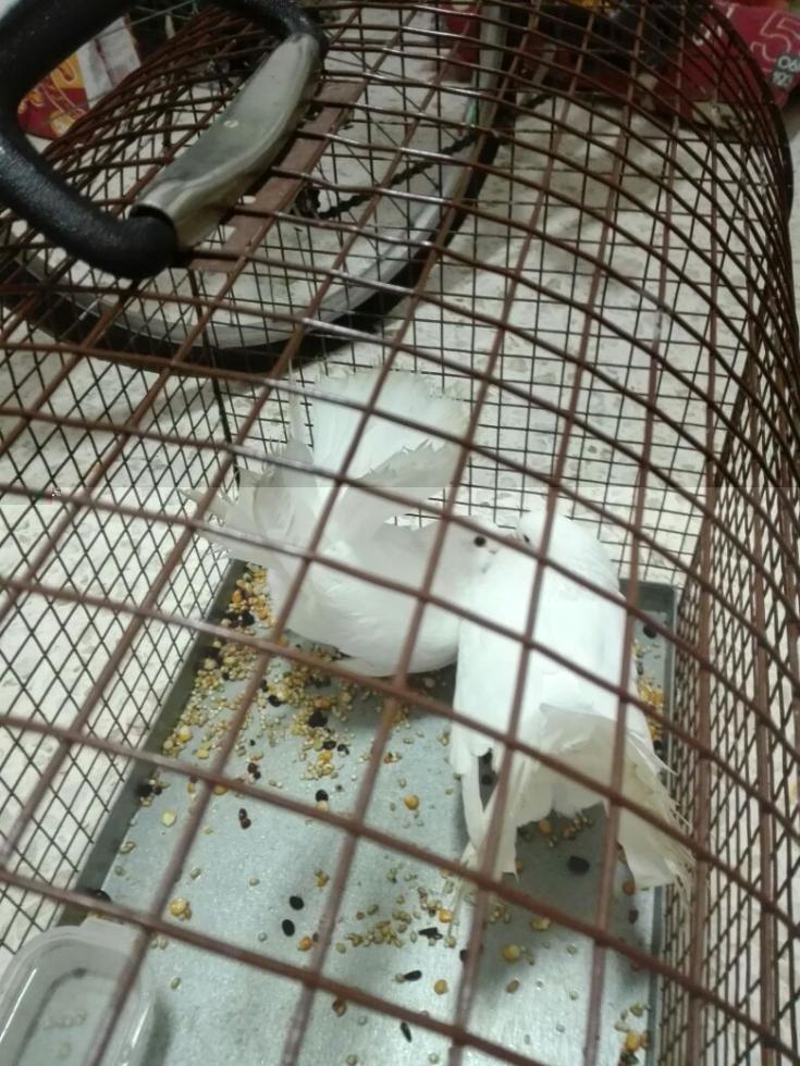 Ciao a tutti,sono state trovate queste due colombe pavoncelle,da una mia amica che le ha prese in quanto si erano stabilite sul terrazzo di una persona a cui non piaceva la loro compagnia... Penso siano due soggetti usati per matrimoni/feste che sono state liberate e per fortuna non sono finite prede di qualche animale domestico.. Volevo chiedervi se si può riconoscere il sesso da queste foto o se sono ancora troppo giovani?io le sento tubare ogni tanto e le vedo baciarsi/farsi grooming...mi hanno anche detto(non l'ho visto direttamente)che ogni tanto cercano di montarsi...