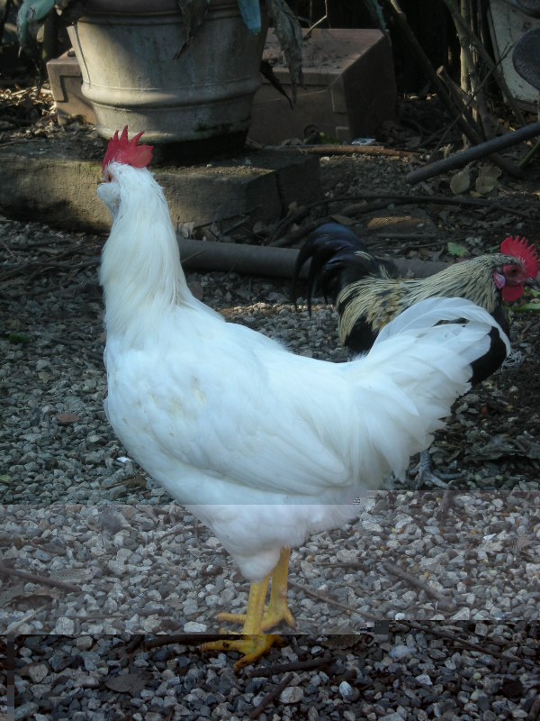 ecco una pollastra ibrida nata a febbraio, ha iniziato a deporre da poco. peso circa 1,8 Kg, credo a maturità piena potrà arrivare a 2 Kg. è figlia di una gallina di Boffa e di un gallo Polverara nato con un ciuffo molto scarso. guardate come è uscita la colorazione!