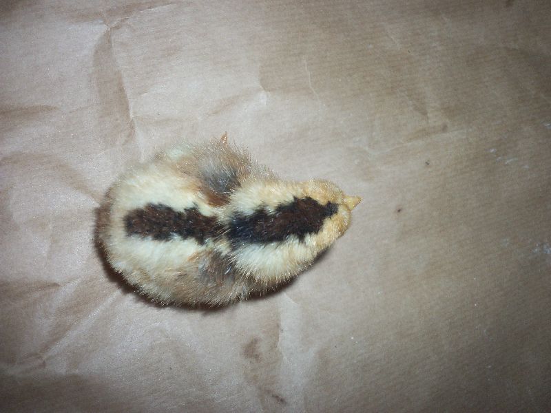 Ho schiuso uova di araucana della colorazione selvatica per un confronto , i pulcini sono differenti nel piumino a un giorno .