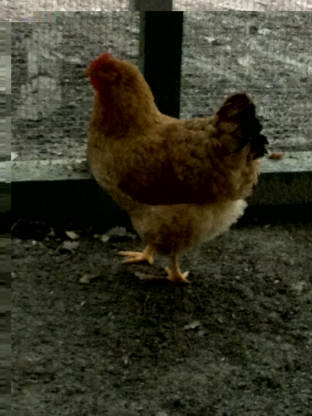 Mi lascia però perplesso un disegno nero presente sul dorso di una gallina in primo piano nella terza foto.