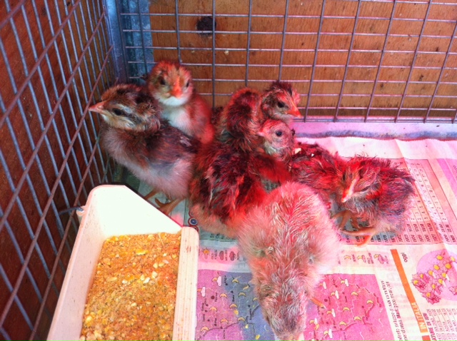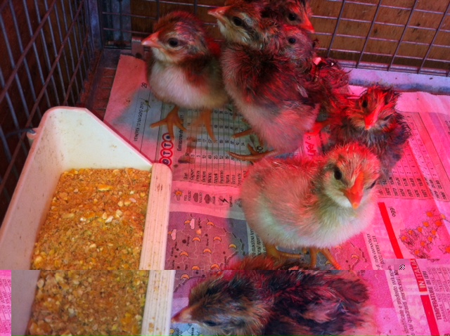 Queste sono tre foto del pulcino appena nato. Purtroppo alcune si vedono male perchè sono illuminate dalla lampada rossa per pulcini.