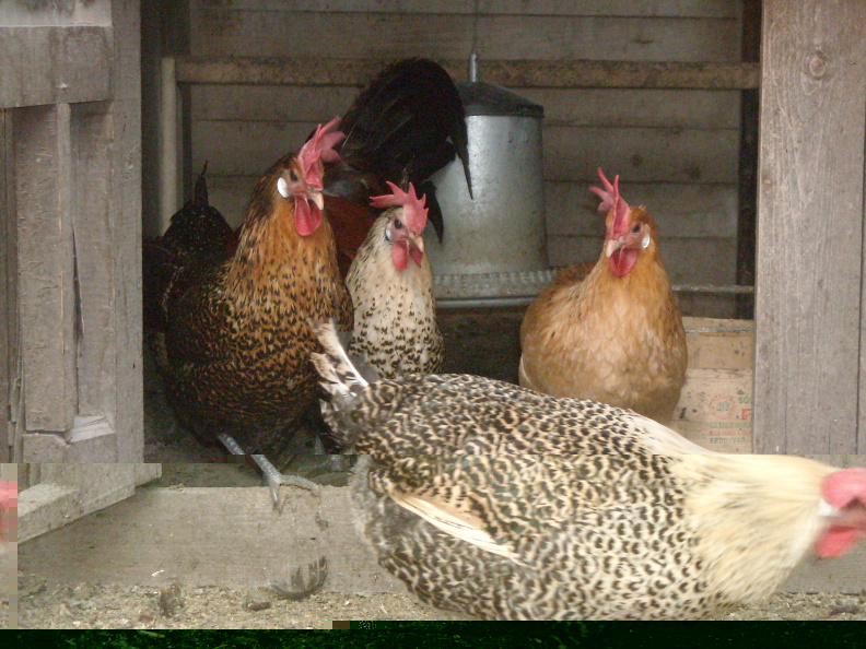 -Una decina di gallinelle di 7 mesi con gallo, finiti per caso nelle mie mani, da pulcini, per aver aiutato nell'allestimento di una fiera