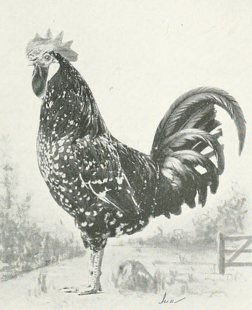 Il gallo non ha una buona picchiettatura (anzi pessima), in quanto mancano su tutte le penne della coda, delle ali, della mantellina e sulle falciformi minori le macchie bianche tipiche della razza.