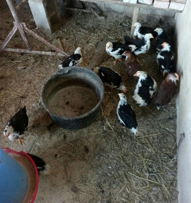 Pulcini del terzo gruppo. Ci sono undici neri picchiettato di bianco e due millefiori. Cinque pulcini non sono riusciti ad uscire dall'uovo ed erano tutti neri picchiettati