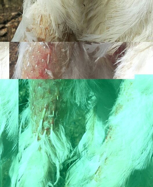 Salve! È da un po di tempo che ho notato delle perdite di penne al di sopra dei tarsi, con comparsa di rossore sulla pelle, ho attribuito la causa dapprima ad un attacco di acari, poi ho pensato alla muta ma non sono convinto. Succede solo ai galli di Livornese, avendo anche brahma, araucane e maranz. Allego foto, spero che riuscite a dirmi cos'è, grazie.