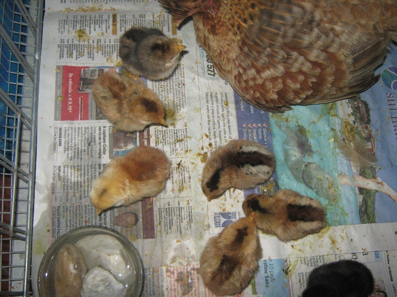 ciao, ma i riproduttori di che colore sono? anche a me sono appena nate le uova di quasi-mugellesi, metto le foto dei miei per comparazione, ma mi ha detto uno che se ne intende che se si cerca come nel mio caso la colorazione frumentina (avana con collo rosso), l'unico pulcino che potrebbe andare bene è quello giallo con l'addome rosso