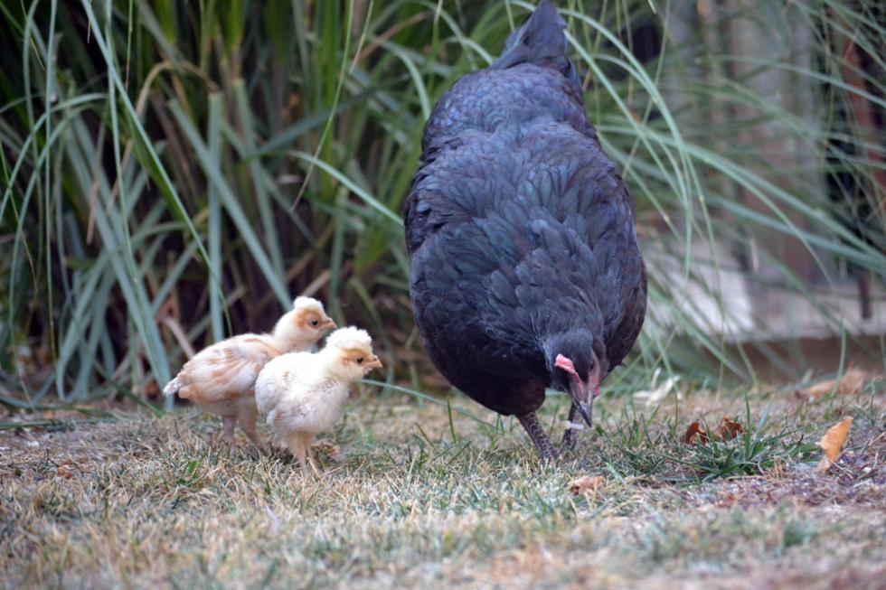 I pulcini di Padovana hanno un paio di settimane, e oggi li ho messi un'oretta nel prato con la chioccia Australorp. Con la loro mamma hanno scoperto tante cose nuove...