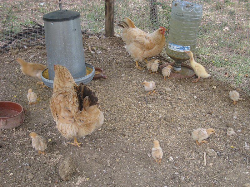 infatti, peccato per i risultati. Le uova fertili variano con l'andare avanti della stagione, i fattori potrebbero essere vari, non starei a preoccuparmi. Ho letto da qualche parte che i galli a volte montano le galline senza un effettivo accoppiamento, è solo un modo per ricordare alla gallina che fa parte del suo harem. Fai caso a cosa effettivamente avviene quando il tuo gallo monta una femmina perchè i miei non sempre si accoppiano anche se in apparenza può sembrare. Posto qualche foto delle mie chiocce con prole di due settimane. Queste galline sono sempre andate molto d'accordo, sono due sorelle figlie dei miei riproduttori dello scorso anno. Una delle due ha lasciato i piccoli a 10 giorni ed è andata a dormire sul posatoio. Poichè hanno covato in contemporanea, l'altra ha adottato i pulcini della sorella. Di giorno fanno le mamme insieme ma di sera è solo una delle due che accoglie tutti, anatroccolo di corritrice indiana compreso. Allegato: