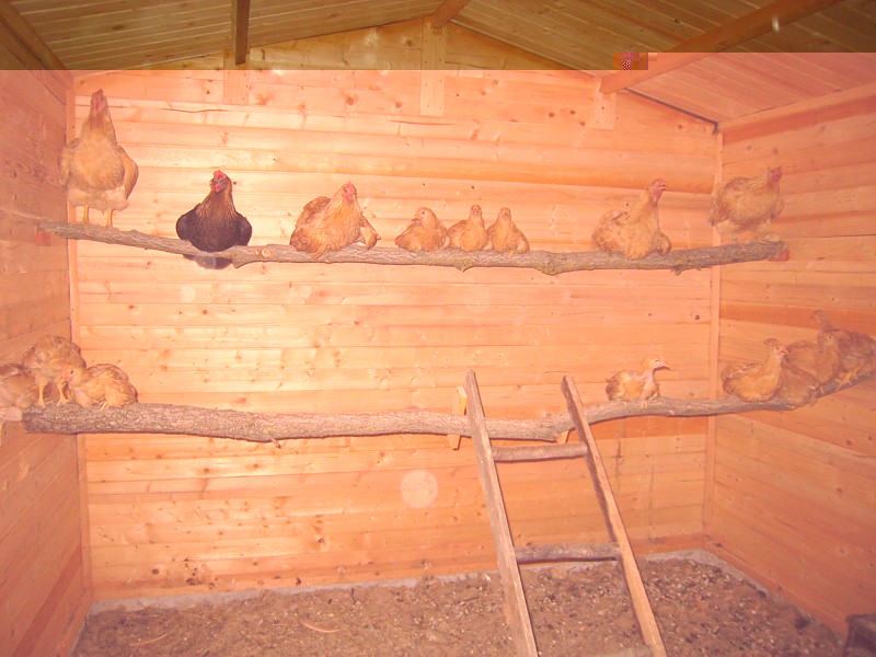 non so se avete mai la curiosità di andare a guardare come dormono i vostri animali, per me è un momento irresistibile, vado tutte le volte che ho animali nuovi o ricoveri nuovi e vado con qualsiasi condizione di tempo e luce. All'inizio avevo paura ad attraversare la campagna solitaria al buio, soprattutto se c'era vento e costringevo mio marito ad accompagnarmi, ora non me ne frega più niente a vado anche senza torcia. Stasera ho scattato qualche foto agli abitanti della casetta di legno, dopo aver visto che mamma chioccia Lio ha ben pensato di andare a dormire sul posatoio alto 140 cm lasciando a terra il figlio unico di 10 giorni urlante come un'aquila. Allora ho preso il piccolo e l'ho messo su accanto a lei, domani mattina si lancerà da lassù, speriamo bene Nella foto successiva c'è un pulcinotto che, vedendo il piccolo di 10 giorni, ha avuto un evidente regresso infantile e ha ben pensato di infilarsi sotto la stessa chioccia che dopo averlo sopportato un po' gli ha assestato un paio di beccate di avvertimento e l'ha scansato con decisione. Nella terza foto c'è il povero Giocondo che oltre al caldo sopporta pazientemente quella zecca lionata neanche tanto leggera che si sta accomodando per trascorrere la notte in pieno comfort. Allegato: