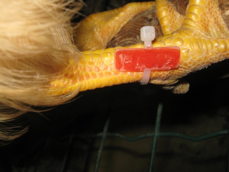 Dopo una settimana dalla nascita dei primi pulcini covati da una Shaver=(ibrido ovaiola) mi va a chioccia una gallina nostrale che aveva già covato ad ottobre, nascita pulcini da uova reperite in campagna a novembre, e poiché si era dimostrata un’ottima chioccia dopo varie peripezie sono riuscito a reperire altre uova da un allevatore di Perugia, per fargliele covare, nati il13 giugno vivi ad oggi 8 polletti R.L. di circa due mesi vi posto delle foto. Apro una parentesi per riferirvi il comportamento della chioccia il giorno 08\08 difendeva i pulcini come un’orsa e faceva avvicinare gli altri polli alle leccornie solo dopo che i pulcini erano sazi, il giorno seguente li ha abbandonati e se si avvicinano quando lei mangia, li picchia. Detto questo è mia intenzione prendere il gallo che più si avvicina allo standard della razza e farlo accoppiare con le migliori galline dell’altra covata in sostanza non le sorelle, per distinguere i vari polli ho proceduto ad inanellare i primi 6 con delle fascette munite di linguette sulle quali ho inciso una lettera che mi specifica la provenienza (P) un numero progressivo per ogni pollo e le utime due cifre dell’anno di nascita quindi da P 1 12 a P 6 12, non so se siamo in topic ma vorrei sapere come fate voi a marcare i vostri riproduttori