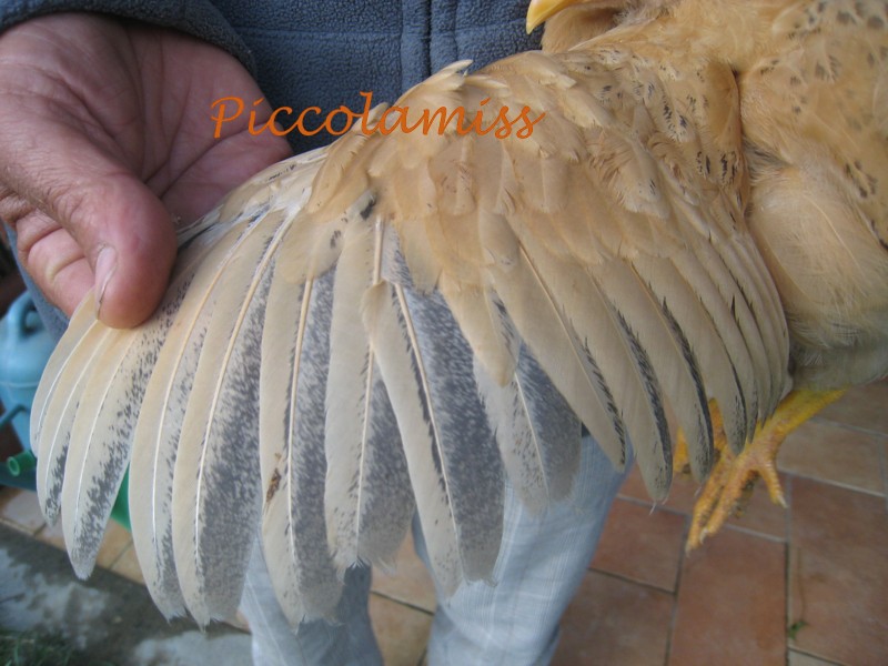Piccolamiss ha scritto: desidero mostrare come si presenta il piumaggio di un pulcinotto di Robusta Lionata di due mesi che alla nascita aveva i puntini sulla testa e le strisce sul dorso: Allegato: babylio1 - IMG_9625.jpg Allegato: babylio2 - IMG_9627.jpg Allegato: babylio3 - IMG_9628.jpg chissa perche si nota quell orlatura della colorazione pernicata e poi da dove è uscita
