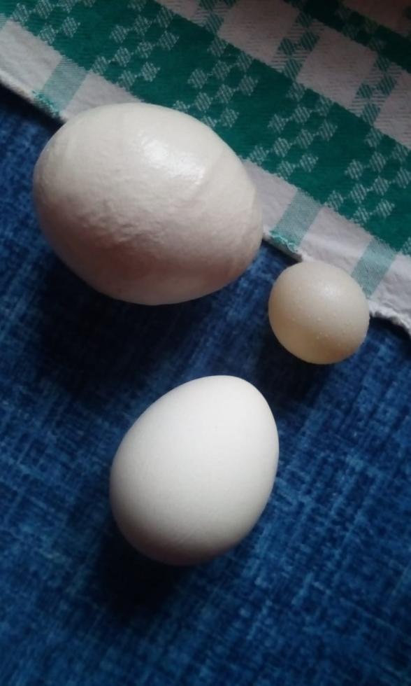 Oggi mia madre ha trovato queste uova dentro alla stalla .. uno mi sembra enorme sembra rotondo quasi