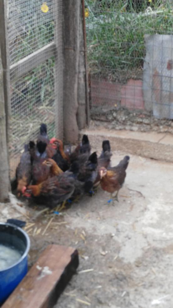 il mio progetto continua ...questo è un galletto di siciliana collo oro a cinque mesi,mentre le altre sono dei pulcini nati da uova regalate sino un misto di siciliana si riconoscono una colorazione blu e nera....vedremo.....un abbraccio Dario