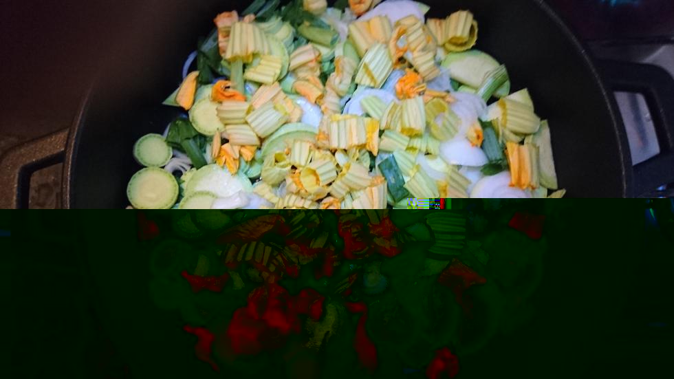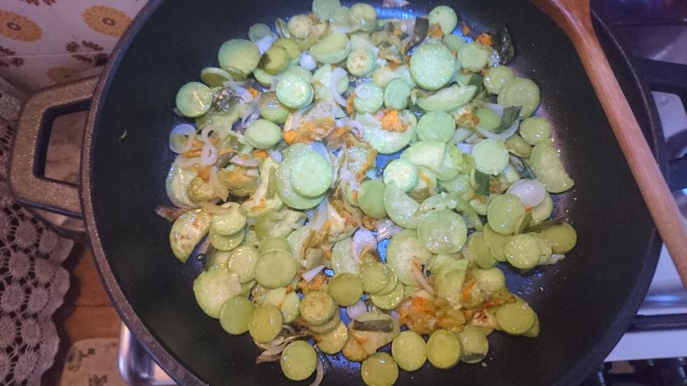 Prima faccio soffriggere le zucchine con le cipolla, come nella foto,