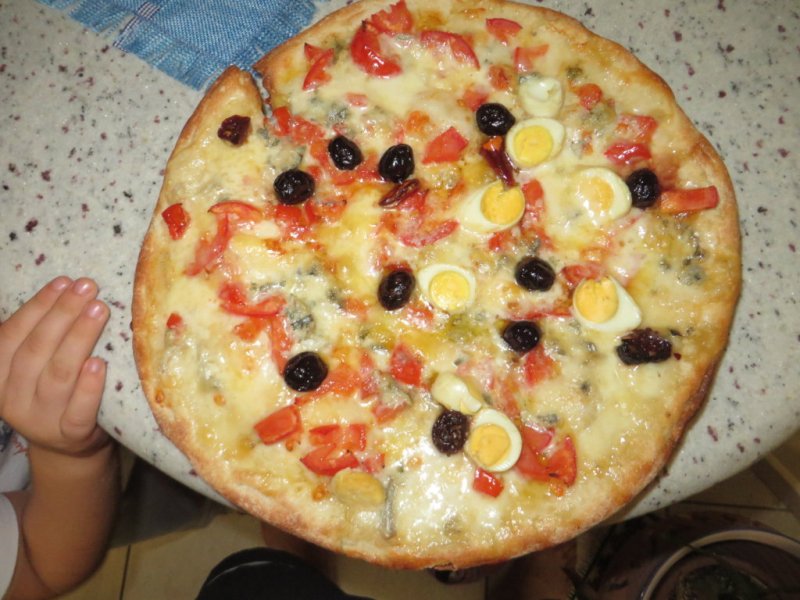 Anche se la base era di quelle preparate, la pizza è venuta molto buona e secondo me era anche bella.