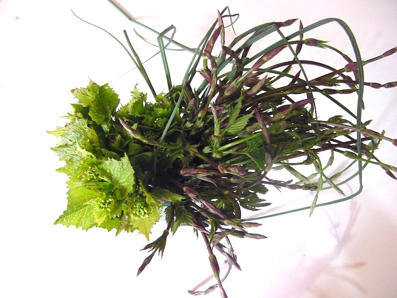 erba cipollina, cime del luppolo da noi dette "bruscandoli", cime di alliaria