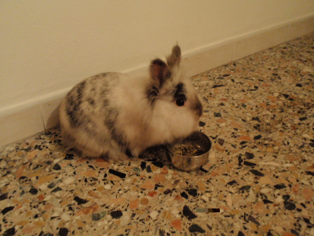 Valex86 ha scritto: Ciao e grazie a tutti, che bello:volevo proprio parlare con Michelaccio perchè l'ho trovato esaustivo in altri post! Oggi 23' giorno di gravidanza: Lola nn porta nulla nel nido ma mangia e si riposa. Vedo il sederone ingrossato ma nn tanto la pancia, da inesperta mi verrebbe da dire che saranno 1/2 cuccioli. Da ieri ha le tettine dure. Quante mammelle ha una nana? Sn ancora perplessa sul controllare quotidianamente il nido dopo il parto anche se ne vedrei la necessità: credo che farebbe il finimondo la mia se sente che ho messo le mani, ha un caratteraccio come pochi, vedrò quello che mi lascierà fare, per ora mi sta alle calcagne quando mi avvicino alla gabbia e controlla se ho spostato qualcosa nel nido. Non è meglio se faccio la conta dei piccoli sollevando il peletto con un suo rametto da rosicchiare? Se escono dalla gabbia e cadono nella ciotola del bere annegano? Vi ringrazio Intanto vi faccio vedere i 2 consorti! L'ariete è il maschio, il Testa è la femmina ciao valex, scusami il ritardo ma sono stato impicciatissimo e non sono entrato nel forum. una coniglia ha, in genere, 8-10 mammelle. pur avendo due nane, però, non mi è mai venuto in mente di controllare se per le nanette è lo stesso al 23° giorno potresti farti un'idea abbastanza realistica del numero di feti con la palpazione. però è un'operazione molto delicata. così ad occhio è, secondo me, impossibile stabilirlo. a volte è difficile anche per occhi molto esperti stabilire se una coniglia è gravida, con il solo esame visivo. a meno che non si tratti di esemplari di grossa mole che ti sfornano 10 piccoli a volta, una coniglia non mette su il trippone che mostrano, che so, cagne o gatte la stima di 2 piccoli, però, mi pare un pò per difetto, le mie due nanette, al primo parto, ne hanno fatti 4. riguardo alla scodella dell'acqua, concordo con che ti suggerisce di sollevarla perchè, se non ricordo male, il nido ha un bordo d'entrata di un paio di cm (correggimi se sbaglio). dei redi non possono, appena nati sollevarsi tanto da superare 2 cm, ma potrebbero essere trasportati dalla madre attaccati alle mammelle (per evitarlo ci vorrebbe un bordo di almeno 5 cm) dato che la coniglia non è in grado di trasportare i piccoli, potrebbero essere scaraventati nell'acqua e freddarsi in fretta. anzi io ti suggerirei di adottare un beverino per piccoli roditori perchè anche la madre è meglio non rischi di bagnarsi. ciao michele