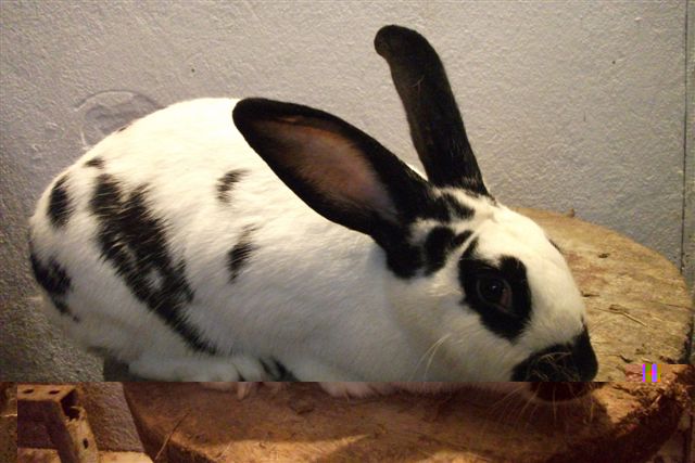 ... ciao gargamella... la pezzata nera ha sicuramente molto sangue papillon .... i colori e le macchie sono loro ...manca la macchia sulla schiena .... ma è molto bella PS I Papillon sono conigli Fantastici