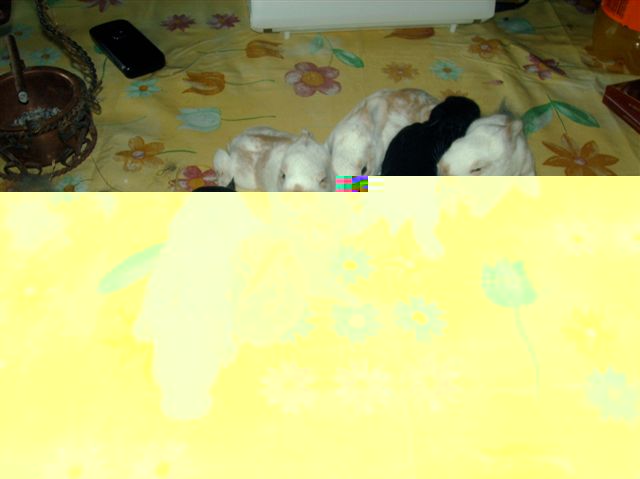 la soddisfazione più grande è vederli che si godono il calore del fieno pulito, che dormono, poi sgambettano fuori dal nido e via che inizia la loro vita!! sono scesa oggi a controllare nel nido..la cucciolata di ariete A., stanno che è una meraviglia, sono enormi!!! e la mamma li ha letteralmente coperti di fieno, secondo me pure troppo...oggi ho mosso il nido con un guanto e ho sollevato un pochino di fieno per controllare, ma non ho toccato i cuccioli, che dormivano beati, e appena hanno sentito un movimento si sono dati alla pazza gioia!! i cuccioli di ariete nano credo stiano bene, hanno solo 3 giorni, è ancora presto per dire che va tutto bene, vediamo quando avranno una settimana di vita se sono ancora tutti vivi contollarli in questo modo va bene? o da fastidio alla coniglia?