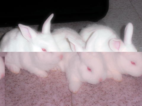Roberto ecco i miei primi coniglietti nati il 7 febbraio, primo parto della madre, ne aveva fatti sei, tre da un lato e altri tre dall'altra parte del nido io per paura di non toccarli, non gli ho messi tutti insieme, prima esperienza