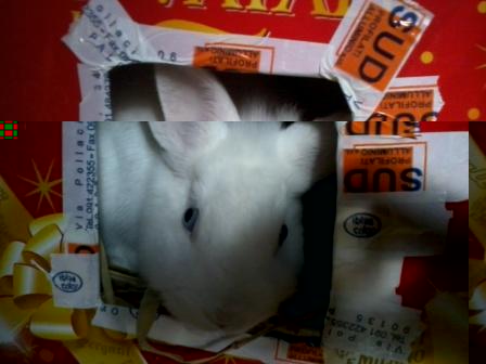 salve ragazzi siccome nn avevo compensato ho avuto l'idea di realizzare il nido alla mia coniglietta con una scatola di cartone del panettone gli o fatto il buco al centro ed il tetto apribile ed gli o messo di dentro la paglia ... lo fatto bn apposta x nn rosicchiarsela . cmq quando glielo o messa lei subito ci e andata ad odorare e subito entro' dentro ... che mi deite va bene??? postero' alcune foto in questi giorni auguroni