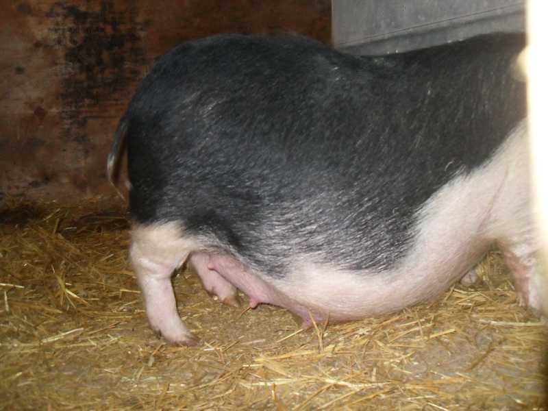 Sono razze difficili da valutare per via del pancione che li distingue anche quando sono tutt'altro che gravide, ma questa ha tutti i segni di un avanzato stato di gravidanza, saluti, Mario