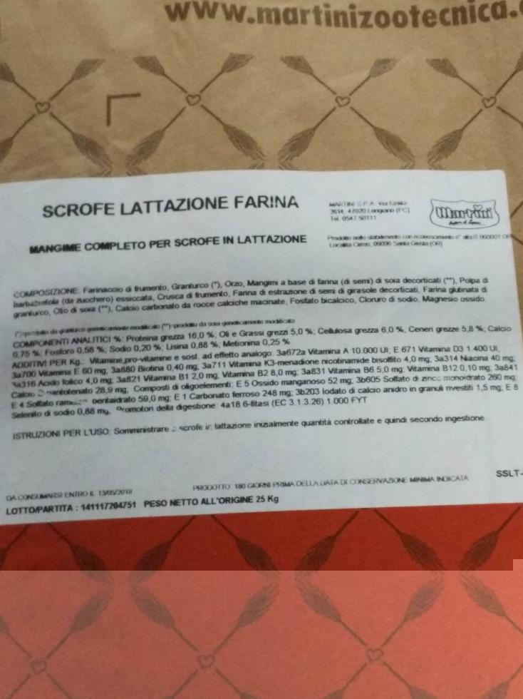Sera a tutti , volevo chiedere una informazione ,ho un scrofetta che dovrebbe partorire fra 25 giorni un mesetto,e volevo chiedere se il mangime che sto dando ora è adatto e posso restare su questo o devo cambiare qualcosa ,volevo sapere cosa ne pensate e se potete darmi qualche consiglio grazie.
