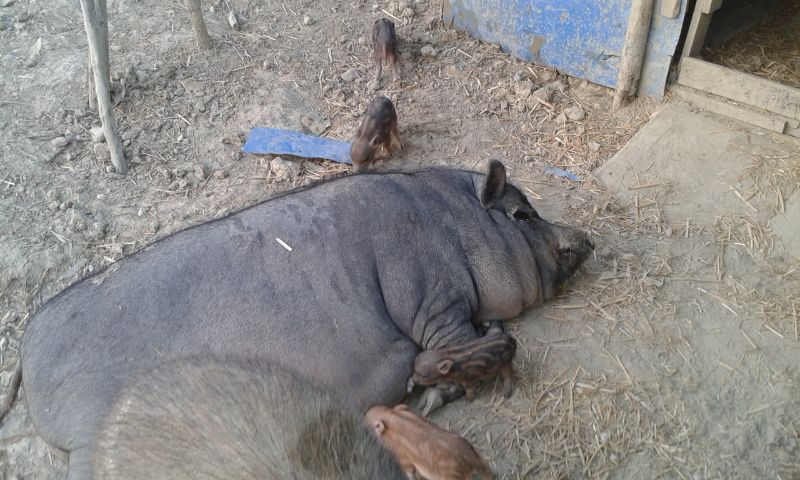 Diciamo che un maiale non cinghialato è più mansueto, con le mie scrofe riesco a fare le punture ai suinetti o alla scrofa quando c'è bisogno. Quando la mamma è aggressiva è difficile lavorare. È molto importante che l'animale ti conosca e sappia che lo tratti bene, ma a volte è proprio questione di carattere. Eh sì , anche i suini hanno ognuno il loro carattere.