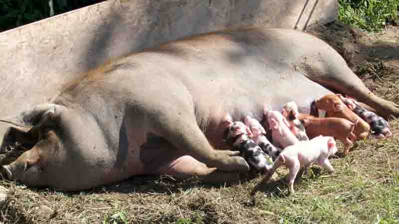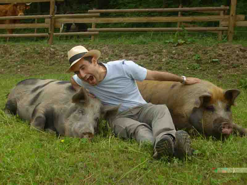 le scrofe non ho la più pallida idea di quanto pesino poichè io macello i maialini appena svezzati e non ho quindi parametri per dirvi il peso degli adulti, ti posso dire che fa un metro al garrese ma vi assicuro che non mi hanno mai fatto scherzi, figuratevi che io assisto durante il parto uno per uno i suinetti e glieli attacco personalmente alle mammmelle (in foto è mio padre).