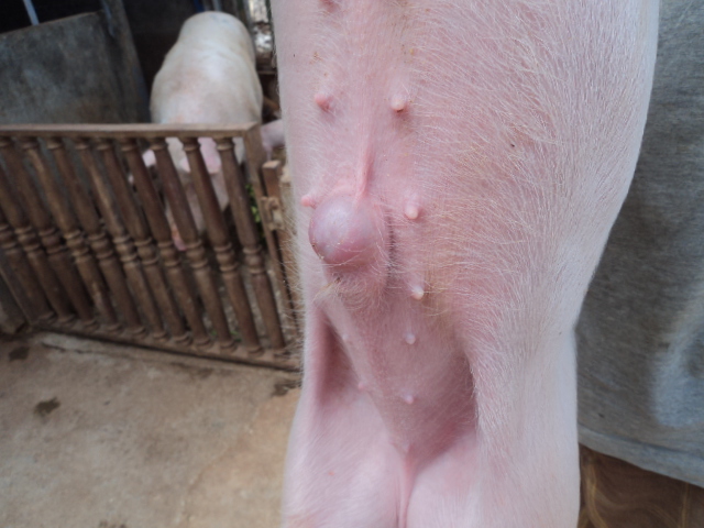 Essendo ancora piccola con un intervento veterinario si sistema , diventano pericolose quando si ingrossano, non è dovuta alla castrazione o a "particolari sforzi" a volte c'è una componente genetica, ci sono riproduttori che trasmettono questi " difetti" può essere il padre o anche la madre, noi lavorando con i grandi numeri in certi periodi si presentano in modo eccessivo sugli animali e ripercorrendo la carriera si ci accorge che sono figli dello stesso verro, oppure quella scrofa con quel verro hanno avuto ogni volta figliate con quel problema.