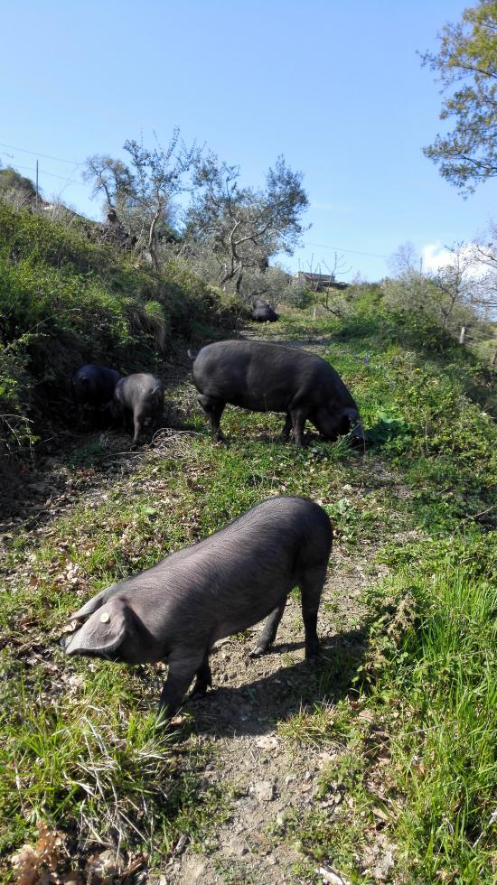Veramente molto belli, dalle foto vedo che sono già un bel gruppo, se nel frattempo che aspettiamo un venditore di ghiande,se ci vuoi raccontare della tua avventura e della scelta di questi riproduttori, che parecchi anni fa avevano provato a introdursi in Italia, ma poi si sono persi, credo per il fatto che si ci aspettava alcuni obbiettivi visti solo nell'allevamento industriale, ma non in quello all'aperto. Ed anche dei tuoi orientamenti verso la trasformazione. Ancora complimenti anche per il fatto di aiutare una razza in via di estinzione, e visto che stiamo andando verso la "BREXIT" hai intenzione di salvare altre razze "extracomunitarie", esempio la Tamworth, Suddleback,Berkshire?