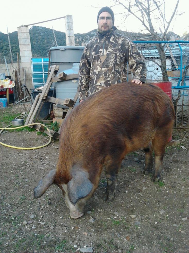 Le prime tre foto sono di Rossella scrofa figlia di un Duroc, le altre due sono di Emy che ha 6 mesi ed è figlia di Molly una mi scrofa ibrida f16 che macellata il 16 di novembre ha pesato 330kg con 260kg di carne pulita, 130 kg a mezzena, la carne era spettacolare!