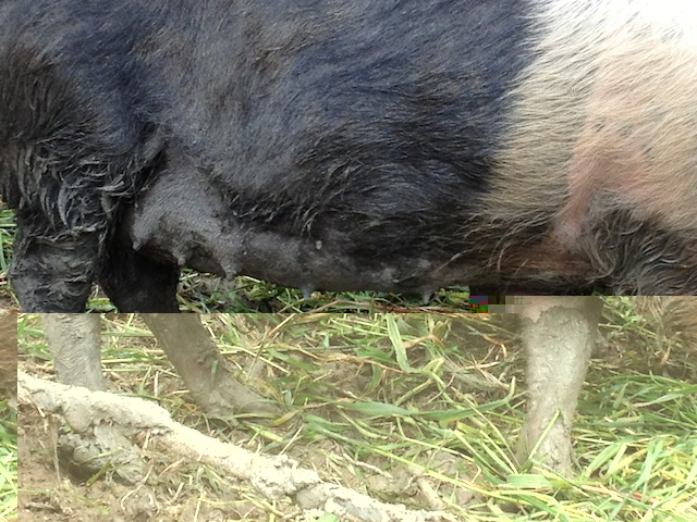 buongiorno, anche se poco esperto posso affermare che questa maialina e' incinta????? me lo confermate dalle foto???? negli ultimi 10gg le si e' abbassata la pancia e sembra proprio che stia producendo latte.....dalle foto siete in grado di dirmi a vostro parere da quanto e' incinta??? la monta del latte avviene all'inizio della gravidanza o alla fine,cioe',prima di partorire......ha passato un anno con il verro senza brulicare foglia ora che volevo macellarla....zac.....deve essersene accorta  grazie saluti
