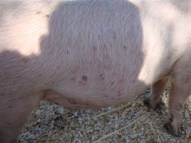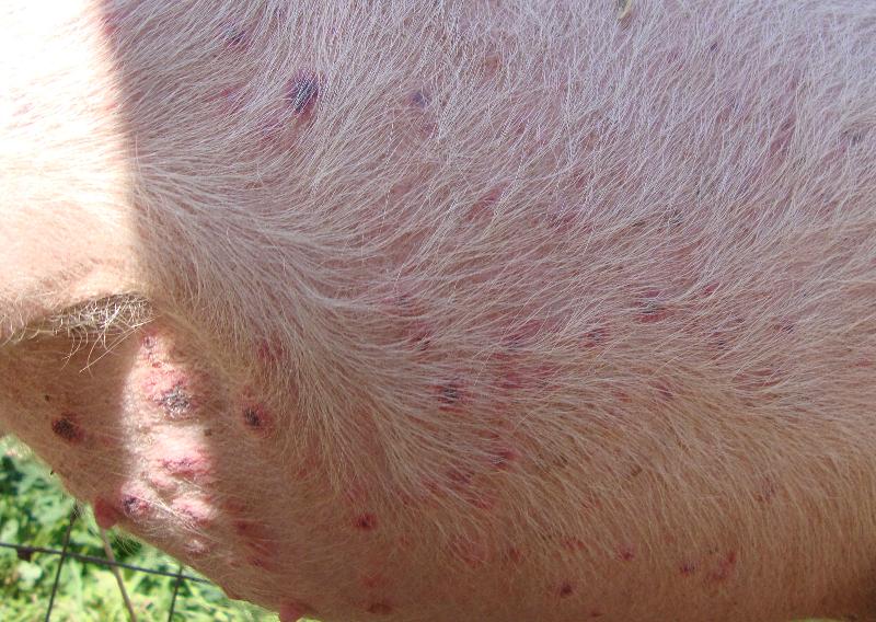 Ciao deco, potrebbe essere dermatite, e il suino cerca di rinfrescarsi mettendosi a contatto con il suolo, volevo sapere, il suino ha del fango dove potersi rotolare? Se puoi toccalo e senti se è caldo, cioè se ha la febbre, non è mica che rantola? Saluti Francesco