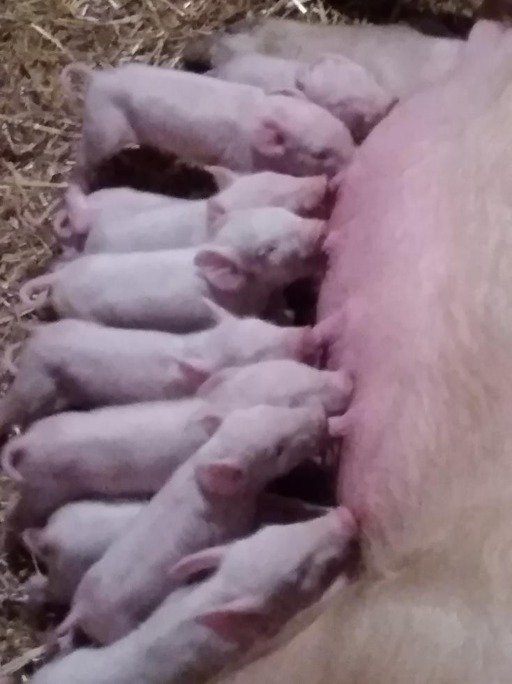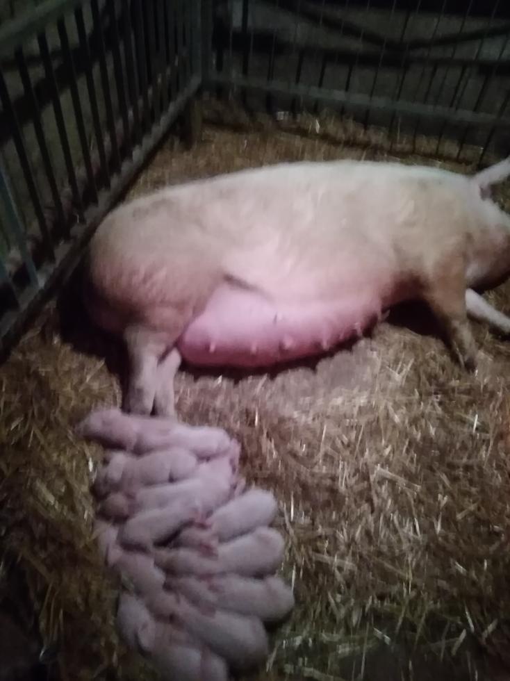 Buongiorno a tutti questa era la scrofa che avevo il dubbio che non fosse gravida invece fortunatamente gli ultimi 15 giorni si è trasformata ed eccola qua a fatto 15 suinetti 2 morti appena nati e sembra che adesso va tutto bene.. Buona giornata a tutti