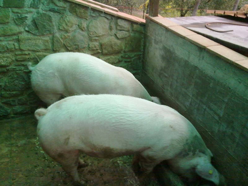 Io prendo sempre il large white da un allevatore qui locale. Prendo due esemplari all'anno. Come detto li prendo a metà aprile primi maggio e arrivo a fine dicembre-primi gennaio. Utilizzo sempre la solita alimentazione nelle quantità che ho detto. Coltivo tutto e macino anche da me con mulino a martelli al trattore. Unica cosa che compro è la crusca. Aggiungo, da quella che è la mia esperienza, che in estate diminuisco le granaglie oleose...vedi mais e fava e aumento leggermente la crusca. Faccio questo per rendere il pasto al suino piu leggero visto i grandi caldi e quindi di conseguenza anche piu digeribile e meno pesante. E' anche vero però che in termini di crescita di peso si va a fasi ...cioè cosa voglio dire. Con l'alimentazione che do io noto che Da aprile a giugno l'incremento di peso ha un ritmo...poi nell'estate ...luglio-settembre....c'è un rallentamento nell'incremento del peso ...per poi avere un significativo aumento di peso nei mesi da settembre a primi dicembre ....dopo di che il mese di dicembre si limita a mantenere il peso fino alla macellazione. Do da mangiare 2 volte al giorno ...mattina e sera. Come quantità per farmi capire prendo un secchio di quelli grandi da tinteggiatura....ne faccio mezzo di sfarinato e lo riempio con acqua....una specie di brodaglia. Castagne, ghiande o un pò di mais mistofave in chicci li do oltre i due pasti tanto per farli divertire a sgranocchiare. A volte se ho grande avanzo di patate do anche quelle ...ma vanno prima lessate e poi le sfaccio nella brodaglia con lo sfarinato. Quest'anno sono in ritardo ..ancora non li ho presi dall'allevatore ...siamo messi male per via del tempo. Ho seminatu tutto quello che potevo ma con tutte questa acqua non so se sinceramente riuscirò a cavarci qualcosa quest'anno. Forse ne prenderò solo uno da 35-40 kg proprio per me per uso domestico