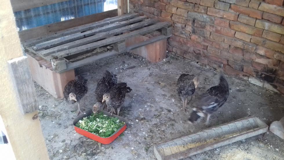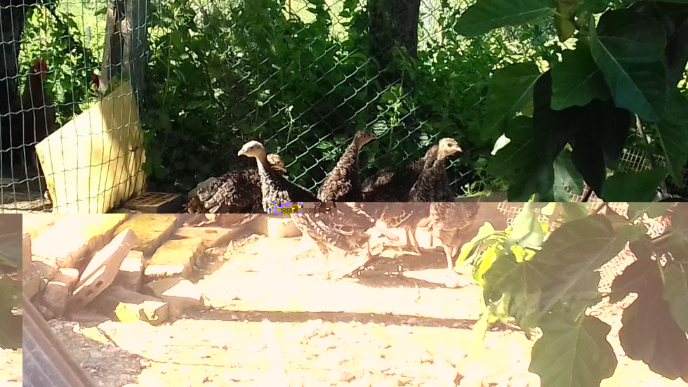 Buonasera a tutti, i tacchinelli hanno poco più di due mesi, intanto due settimane fa li ho sistemati nel nuovo ricovero. Ogni giorno gli do erbette selvatiche e uovo sodo, inoltre quando ho un pò di tempo in più da trascorrere in campagna li libero nello spazio circostante al ricovero